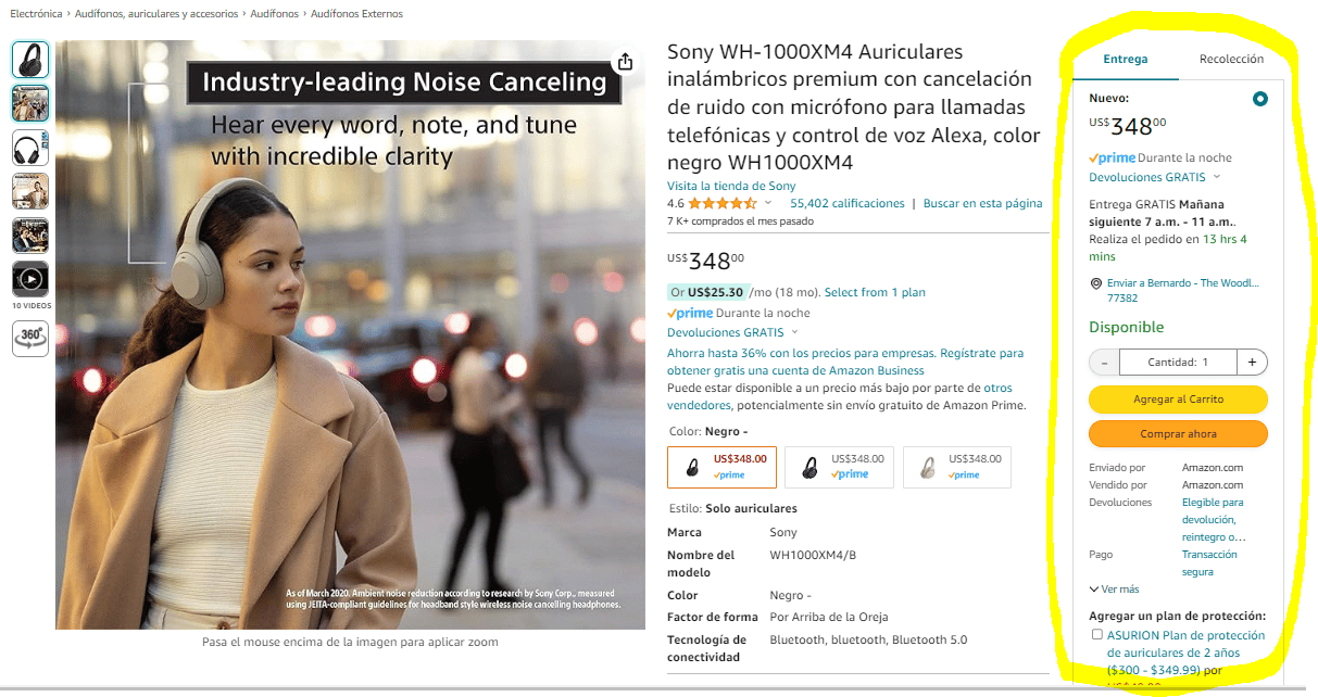 Ok. Por si no sabías, Amazon tiene una sección en las páginas de los productos que seguramente haz comprado llamada "Buy Box" o “Caja de Compra”