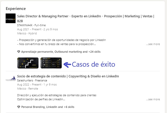 Además LinkedIn ya la está colocando esta sección debajo de la secci´n de encabezado que incluye la lista de los servicios que ofreces.